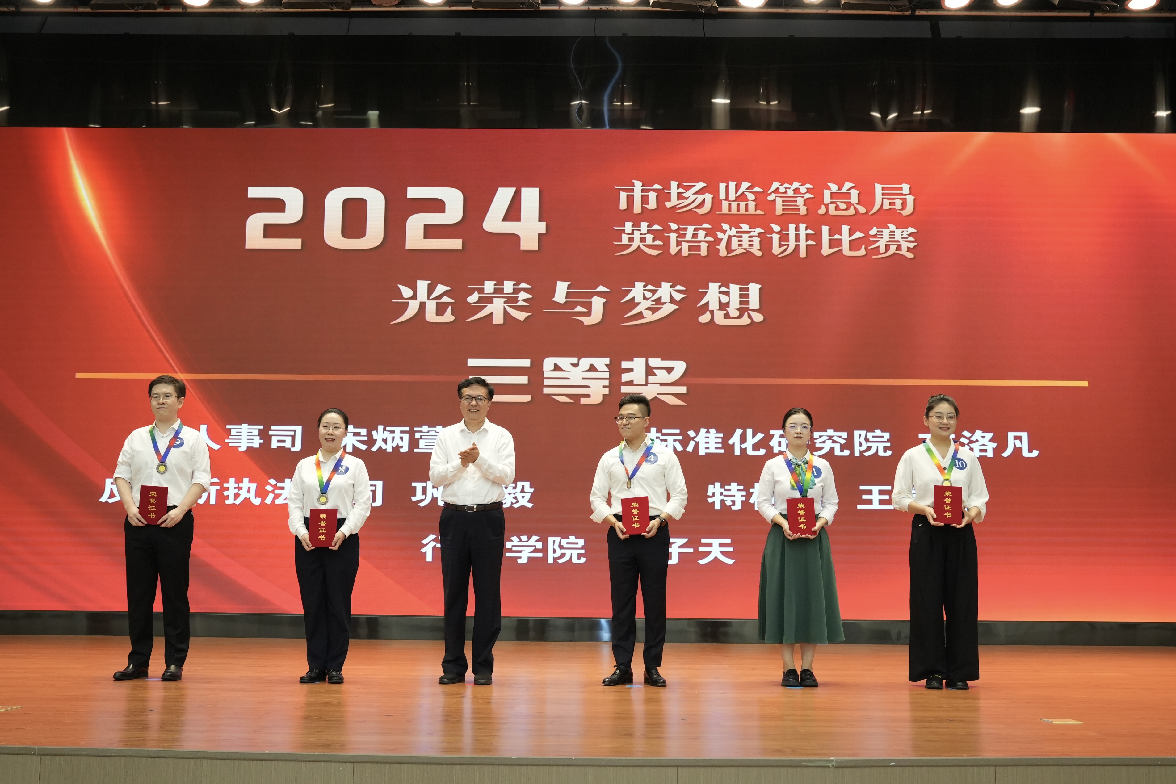 近日,市場(chǎng)監(jiān)管總局舉辦“光榮與夢(mèng)想”(Glory and Dream)2024年英語(yǔ)演講比賽決賽,《中國(guó)標(biāo)準(zhǔn)化》雜志社員工方洛凡榮獲三等獎(jiǎng),中國(guó)標(biāo)準(zhǔn)化研究院獲得最佳組織獎(jiǎng)。總局黨組成員、副局長(zhǎng),國(guó)家認(rèn)監(jiān)委主任蒲淳,反壟斷總監(jiān)許新建出席決賽并為獲獎(jiǎng)選手頒獎(jiǎng)。