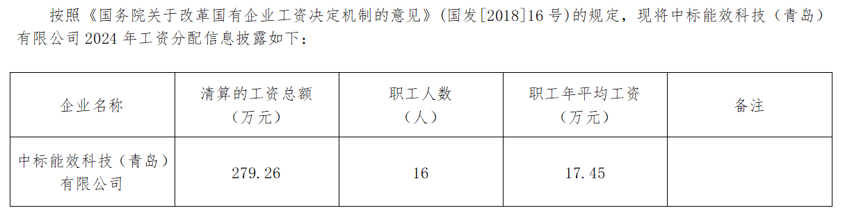 2024年中標能效科技(青島)有限公司工資分配信息披露
