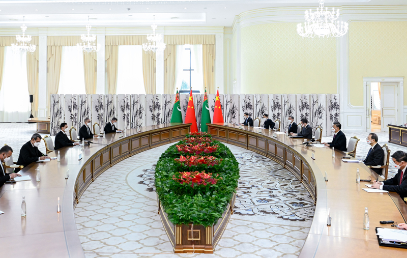習近平強調,雙方要做大兩國天然氣合作的體量和規模,為兩國發展振興注入新動力。要加快推進非資源領域合作,推進共建“一帶一路”倡議同土方“復興絲綢之路”戰略對接。盡早落實互設文化中心,為兩國人文交流搭建新平臺。中方愿早日在土庫曼斯坦設立魯班工坊,同土方繼續加強抗疫合作。中方愿同土方加強“中國+中亞五國”會晤機制內合作,落實全球發展倡議和全球安全倡議,密切國際協作,維護廣大發展中國家共同利益,為促進世界和平與發展作出貢獻。