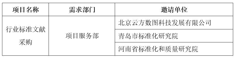 按照《標新科技(北京)有限公司采購工作管理辦法(試行)》要求,現對“行業標準文獻采購”項目競爭性談判邀請單位進行公示。