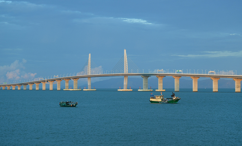 習近平總書記專程前來,親自宣布大橋開通。總書記驅(qū)車沿橋巡覽,登島遠眺,感慨萬千:“這是一座圓夢橋、同心橋、自信橋、復(fù)興橋。”