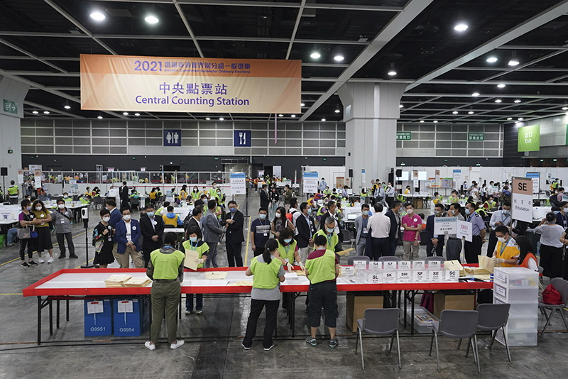 2021年香港特別行政區(qū)選舉委員會界別分組一般選舉舉行。這是工作人員開始點票(2021年9月19日攝)。新華社記者 呂小煒 攝